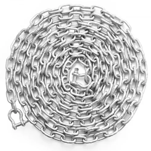 Cadena de ancla para barco VEVOR, 5/16" x 10', 2373 lb WLL/7120 lb BS, cadena de ancla de acero galvanizado de grado marino con grilletes de doble anilla de seguridad para barcos, cubierta, pesca. Compatible con diferentes anclas.