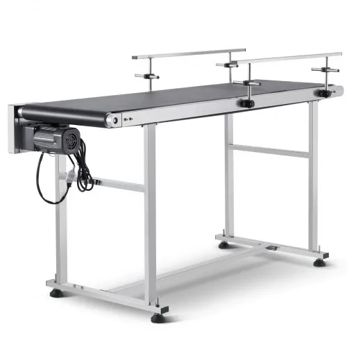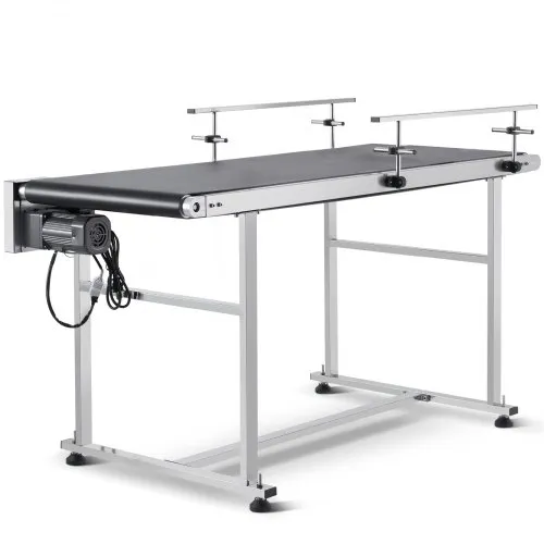 Transportador de banda VEVOR, mesa transportadora de 59 x 15,7 pulgadas, transportador de banda motorizado de acero inoxidable de alta resistencia para aplicaciones de codificación por inyección de tinta, banda de PVC motorizada, antiestática, velocidad ajustable (barandilla doble)