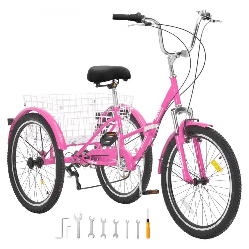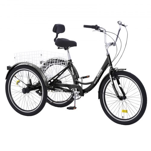 VEVOR Triciclos para adultos, 7 velocidades, 20 pulgadas, de acero al carbono, con cesta y asiento ajustable, ideal para picnics, compras, para personas mayores, mujeres y hombres (negro)