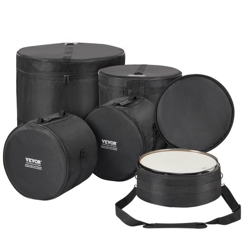 Bolsa de batería VEVOR de 5 piezas, duradera, hecha de material Oxford 1680D, acolchada, con correa de hombro extraíble de 1,5 m y asas de transporte, plegable, compatible con bajos de 22'', toms de 12''/13''/16'' y caja de 14''.