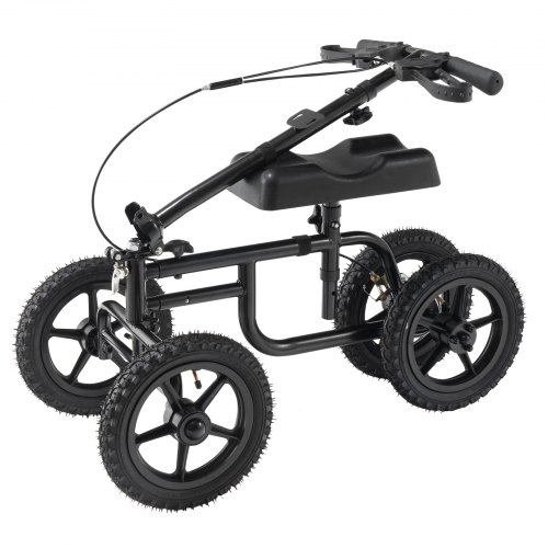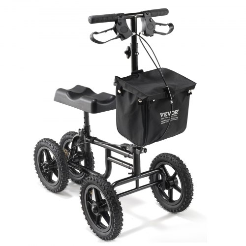 Patinete de rodilla plegable VEVOR, andador de rodilla dirigible de acero al carbono con manillar y almohadilla para la rodilla ajustables en altura, rueda todoterreno de 12", frenos dobles, patinete de recuperación de piernas para lesiones de tobillo, pie y rodilla, soporta hasta 159 kg (350 libras).