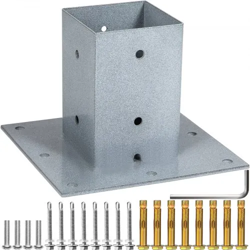 Base para poste VEVOR, placa base para buzón de 10 x 10 cm, anclaje para poste de cerca con recubrimiento en polvo negro, base para poste de terraza de acero Q235, placa base de montaje en superficie para buzones, soportes de terraza y barandillas de porche.