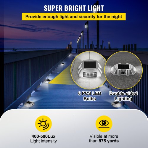 Luces de entrada VEVOR (paquete de 24) Luces solares para entrada, color blanco brillante con tornillo, luces solares para terraza, luces de muelle inalámbricas impermeables para exteriores, 6 LED para advertencia de caminos, jardines, pasarelas, aceras y escalones