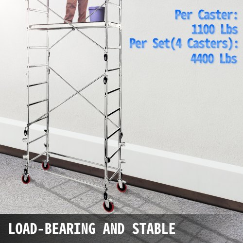 Juego de ruedas para andamios VEVOR, paquete de 4 resistentes de 8", con capacidad de 2000 kg por juego y ruedas con vástago de bloqueo y freno, repuesto de poliuretano para andamios, estantes y bancos de trabajo.
