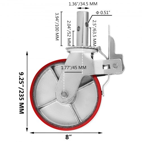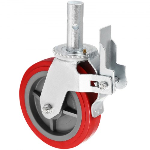 VEVOR Juego de 4 ruedas para andamios, 8\" - Ruedas para andamios resistentes, 3200 libras por juego - Ruedas con vástago de bloqueo con freno, poliuretano rojo - Reemplazo para andamios, estantes, banco de trabajo