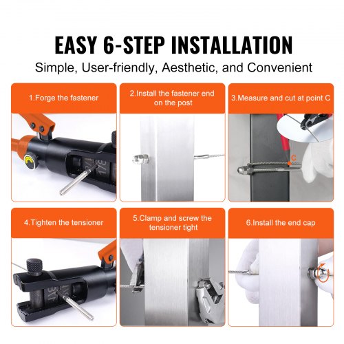 VEVOR - Kit de 20 barandillas de cable invisibles, receptor invisible de acero inoxidable T316 de 1/8" y extremo de perno de presión para barandilla de cable, tensor de presión de 1/8" para postes de madera/metal, herrajes para barandilla de cable, color plateado