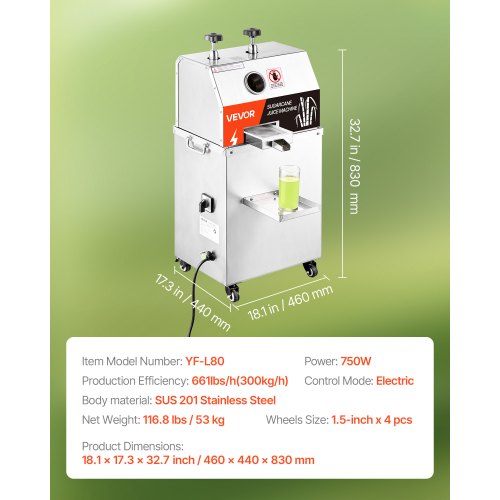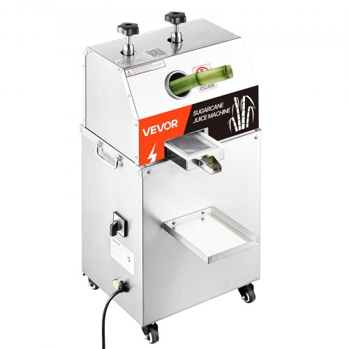Exprimidor de caña de azúcar comercial VEVOR, 750 W, 3 rodillos de acero inoxidable, con ruedas para uso doméstico y comercial.