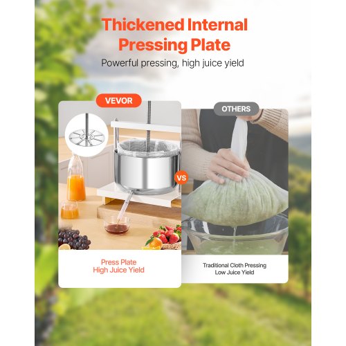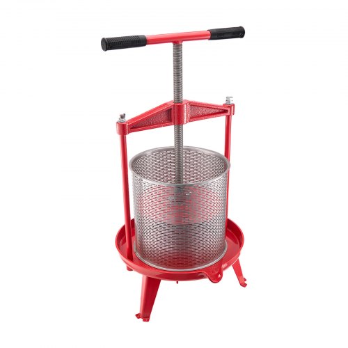 Prensa de vino de frutas VEVOR de 14 L (3,69 galones), cesta de acero inoxidable con estructura triangular y travesaño, exprimidor manual, prensa para tintura de sidra, manzana y uva con mango en T para cocina y hogar.