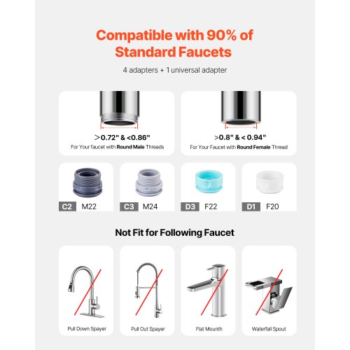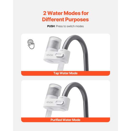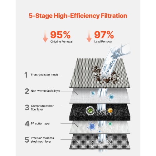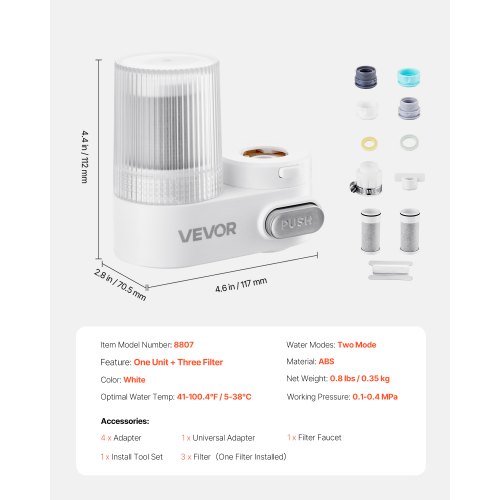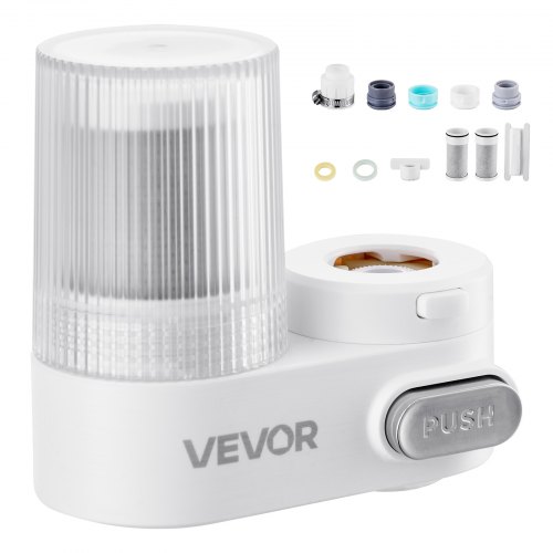 Filtro de agua VEVOR para grifo, purificador de agua vertical para grifo de fregadero, filtro de fibra de carbono, elimina cloro y plomo con 3 filtros, compatible con la mayoría de grifos de cocina o baño, color blanco