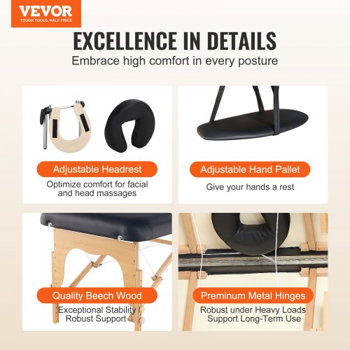 Camilla de masaje profesional VEVOR de 76 cm de ancho, plegable y resistente, con altura ajustable de 8 niveles para salón de tatuajes, mesa de spa portátil con reposacabezas, paleta y bolsa de transporte, capacidad de carga de 340 kg.