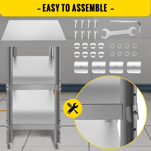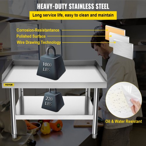VEVOR - Soporte de parrilla de acero inoxidable (60 x 30 x 24 pulgadas), mesa de acero inoxidable con estante de almacenamiento ajustable, ideal para hoteles, hogares y restaurantes.
