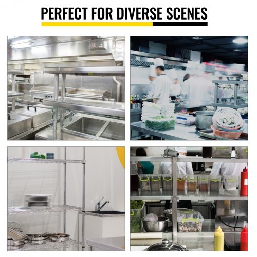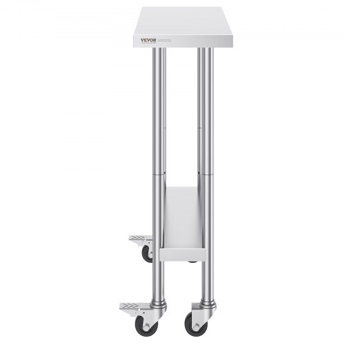 Estante doble VEVOR de acero inoxidable de dos niveles, 183 cm de largo x 30 cm de ancho, altura ajustable para mesas de preparación y trabajo en cocinas, restaurantes y talleres.