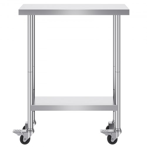 Mesa de trabajo de acero inoxidable VEVOR de 76 x 30 x 96 cm, con 4 ruedas y 3 niveles de altura ajustables, resistente para cocinas comerciales y restaurantes, color plateado