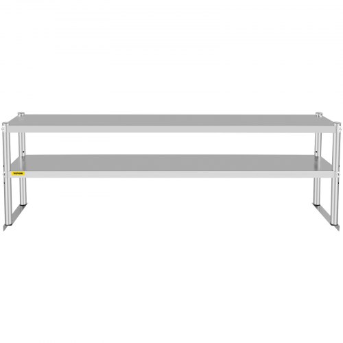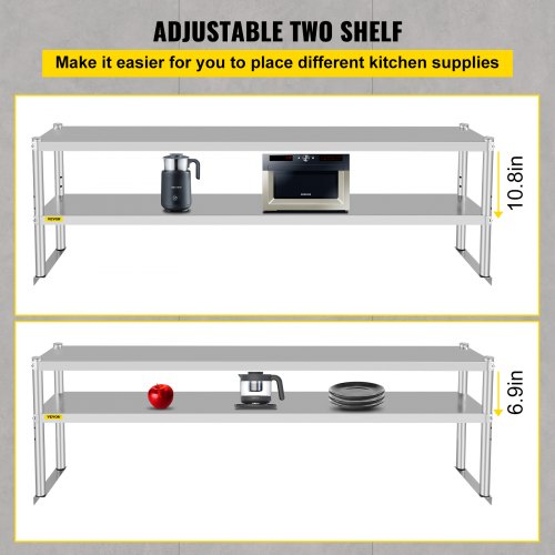 VEVOR Tuspuzz Double Overshelf, Double Tier Stainless Steel Overshelf, 60 in. Length x 12 in. Width Double Deck Overshelf, Height Adjustable Overshelf for Prep & Work Table in Kitchen, Restaurant