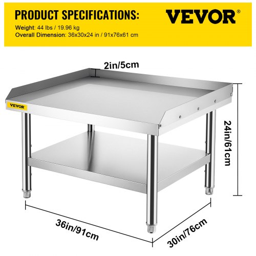 VEVOR - Soporte de parrilla de acero inoxidable (91 x 76 x 61 cm), mesa de acero inoxidable con estante de almacenamiento ajustable, ideal para hoteles, hogares y restaurantes.