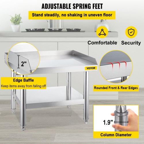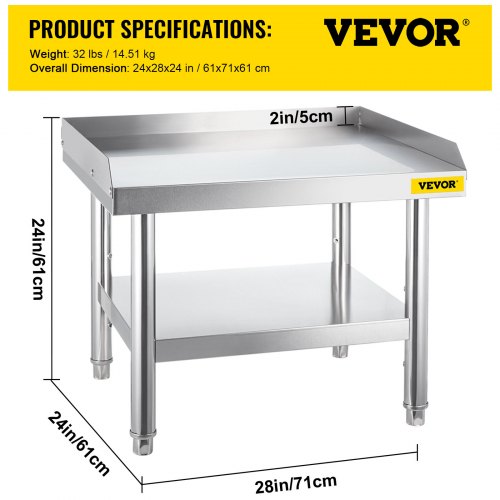 VEVOR - Soporte de parrilla de acero inoxidable (61 x 71 x 61 cm), mesa de acero inoxidable con estante de almacenamiento ajustable, ideal para hoteles, hogares y restaurantes.