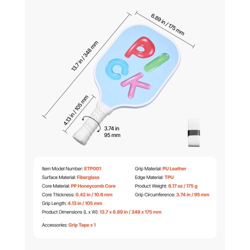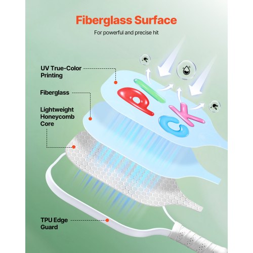 VEVOR - Pala de Pickleball para Niños, Ligera, con Agarre Pequeño y Diseño Bonito, de Fibra de Vidrio y Núcleo de Panal, para Niños, Jóvenes, Niños y Niñas