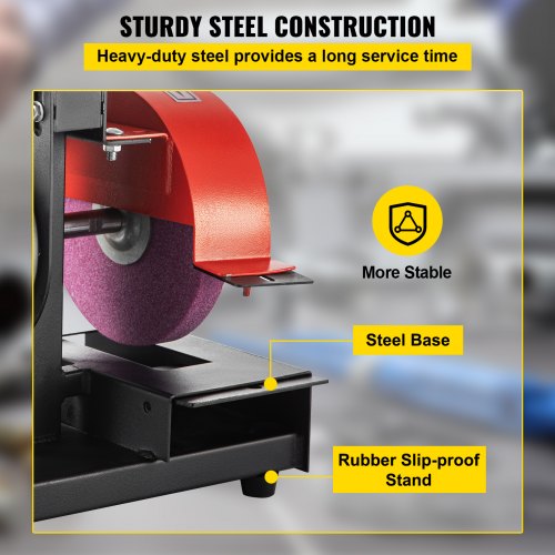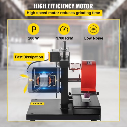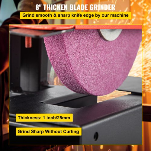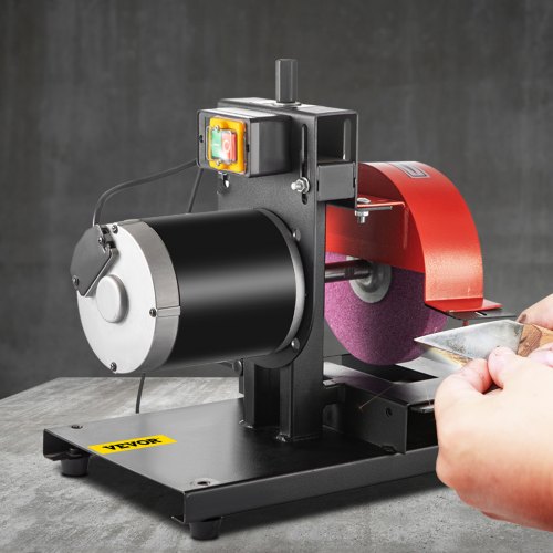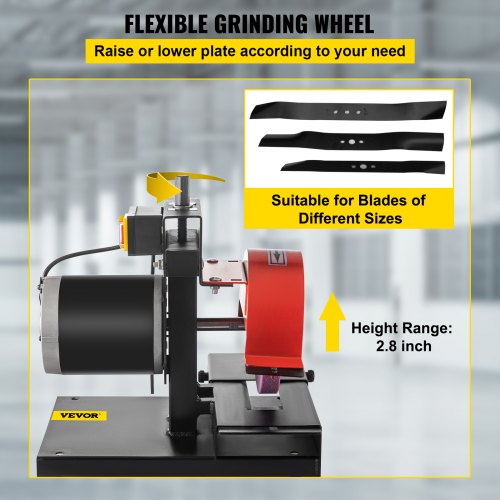 Afiladora de cuchillas para cortacésped VEVOR, motor de 1/3 HP, 1700 RPM, rueda de 8" de diámetro y 1" de grosor, altura ajustable de 2,8" para afilar cuchillas y herramientas en jardín o taller.