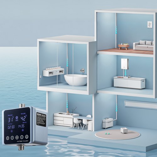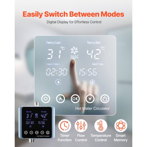 Kit de bomba de recirculación de agua caliente instantánea inteligente digital VEVOR con termostato integrado, temporizador y pantalla digital. Sistema de bomba de recirculación bajo fregadero para calentadores de agua domésticos.