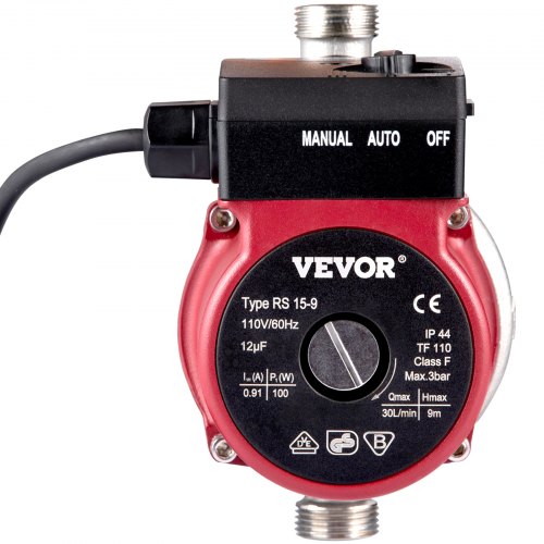 Bomba de recirculación de agua caliente VEVOR, 245 W, 110 V, arranque automático, NPT de 3/4", con conexiones de latón, cabezal de acero inoxidable, control de 2 velocidades para calentador de agua eléctrico.