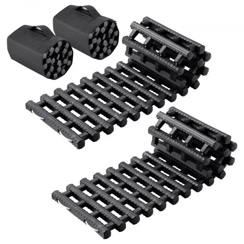 Tablas de tracción VEVOR de 7 toneladas con material TPR, tablas de recuperación para vehículos todoterreno, coches, camionetas, SUV y autocaravanas. Par de alfombrillas de tracción para neumáticos en nieve, arena, barro y terrenos sueltos. Bolsas de almacenamiento, cortas, negras.