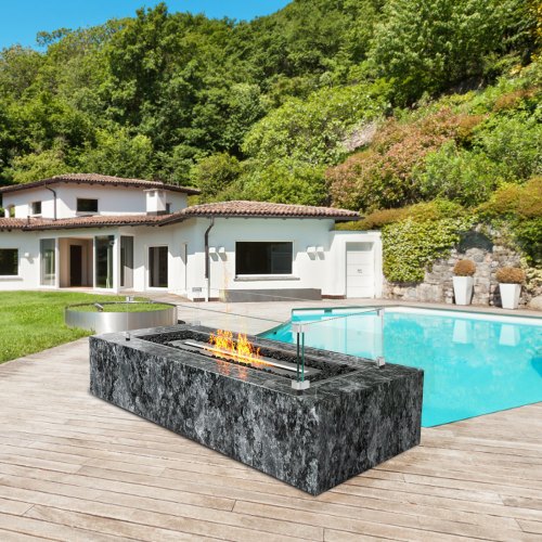 VEVOR - Protector de viento de vidrio para mesa de fogata rectangular (91 x 40 x 19 cm), panel de vidrio templado resistente de 0,89 cm de grosor con soporte de esquina de aluminio duro y patas de goma, fácil de montar.