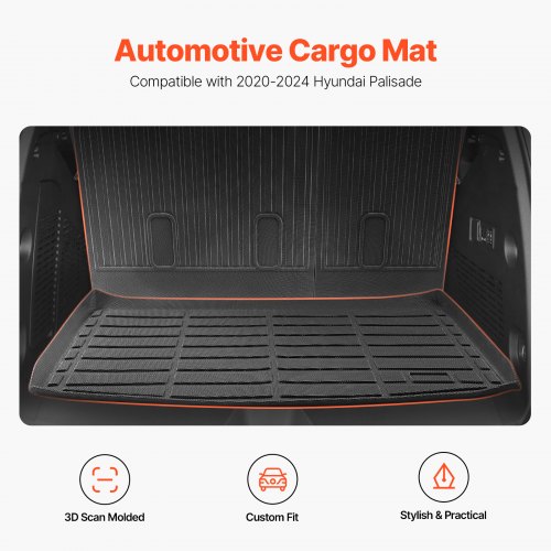 Alfombrillas de carga VEVOR compatibles con Hyundai Palisade 2020-2024, juego de revestimiento de carga de TPE personalizado para SUV, protector de maletero y asiento trasero de repuesto, color negro, alfombrilla para maletero y respaldo.