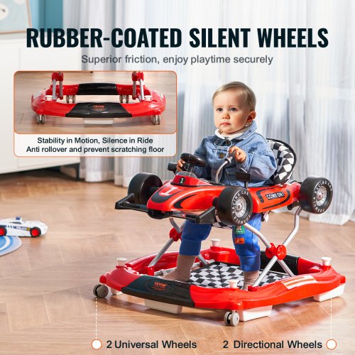 Andador para bebé 4 en 1 VEVOR, centro de actividades plegable con ruedas, altura ajustable, luz, volante, coche de juguete | Aprendizaje sentado | Andador de empuje | Andador mecedor para niños de 6 a 24 meses