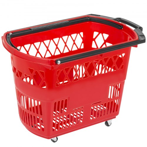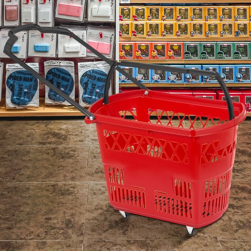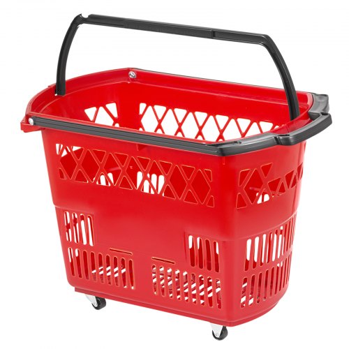 VEVOR - Juego de 6 carritos de compra de plástico con ruedas, cestas rojas con asas, cestas portátiles para tiendas minoristas