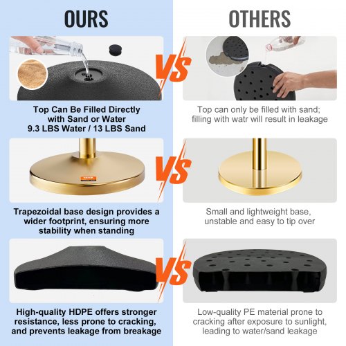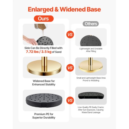 VEVOR 4 PCS Poste de Estaca de Acero Inoxidable de 1,5 m con Base Hueca de Inyección de Arena y 3 Cuerdas de Terciopelo Rojo, Barreras de Control de Multitudes para Teatro, Fiesta, Boda, Dorado