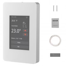 Termostato programable VEVOR de 7 días para calefacción por suelo radiante, con cable y bomba de calor, con GFCI y sensor sensible, pantalla táctil LCD, de bajo consumo, gris-blanco (sin wifi)