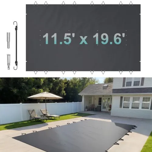 VEVOR - Cubierta de seguridad para piscina enterrada (6 m x 11,5 m), rectangular, con escalón derecho, triple costura, malla PP de alta resistencia, buena permeabilidad a la lluvia, incluye herrajes de instalación.