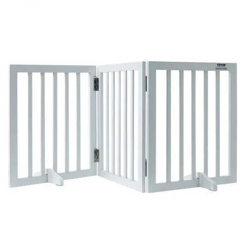 Puerta para perros VEVOR, 61 cm de alto x 152 cm de ancho, plegable, de 3 paneles, para pasillos anchos y estrechos, extensible con soporte silencioso para pies, para interiores, color blanco