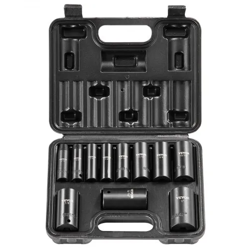 Juego de dados de impacto VEVOR de 3/8", 12 piezas de dados poco profundos SAE de 5/16"-1", 6 puntas de acero de aleación Cr-Mo para reparación de automóviles, marcas de tamaño fáciles de leer, construcción robusta, incluye estuche.