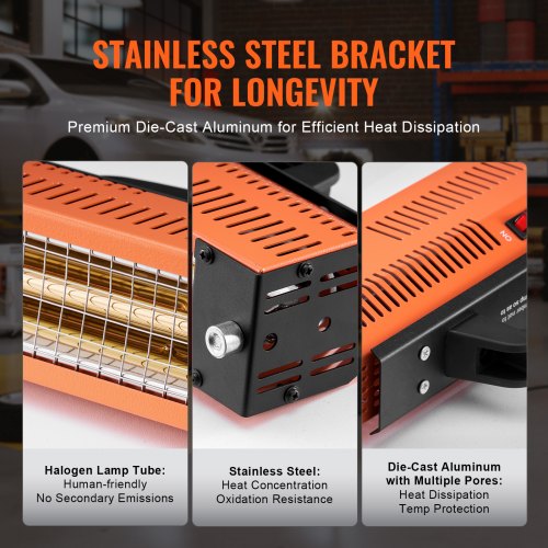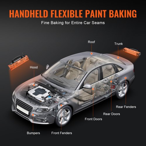 Lámpara de curado por infrarrojos VEVOR, 1000 W de alta potencia, luz de curado portátil con calefacción automática para vehículos, 2,48 pies cuadrados de área de horneado, calentadores para cabinas de horneado por aspersión, secador de pintura para reparaciones in situ y secado de motores.