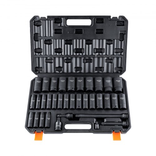 Juego de dados de impacto VEVOR de 3/8", 25 piezas, SAE de 5/16" a 1", 6 puntas, acero de aleación Cr-Mo para reparación de automóviles, marcas de tamaño fáciles de leer, construcción robusta, incluye estuche.