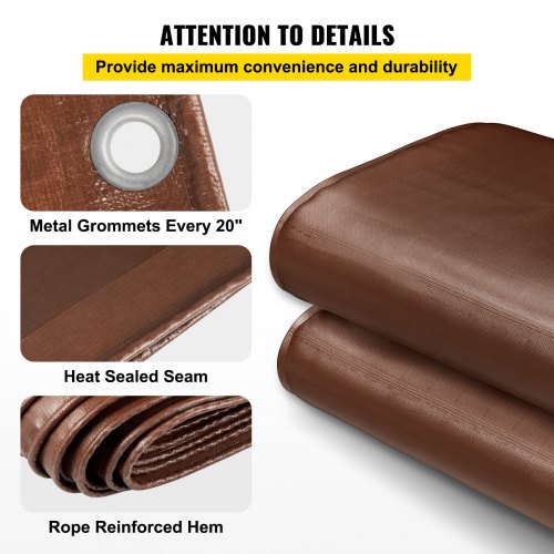 VEVOR Lona Impermeable para Exteriores en PE 9 x 9 m para Garaje, Taller, Jardín, Patio, Lona con Cubierta con Ojales 18,3 kg Impermeable para Automóviles Barcos Uso en Exteriores Lona Marrón