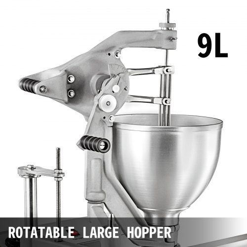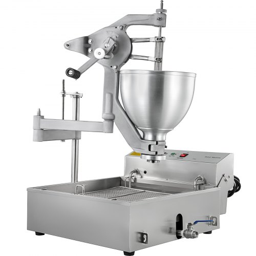 Freidora de donas manual VEVOR, mini máquina comercial para hacer donas, capacidad de 9 l, tolva, 3 moldes, grosor ajustable, 3000 W, acero inoxidable