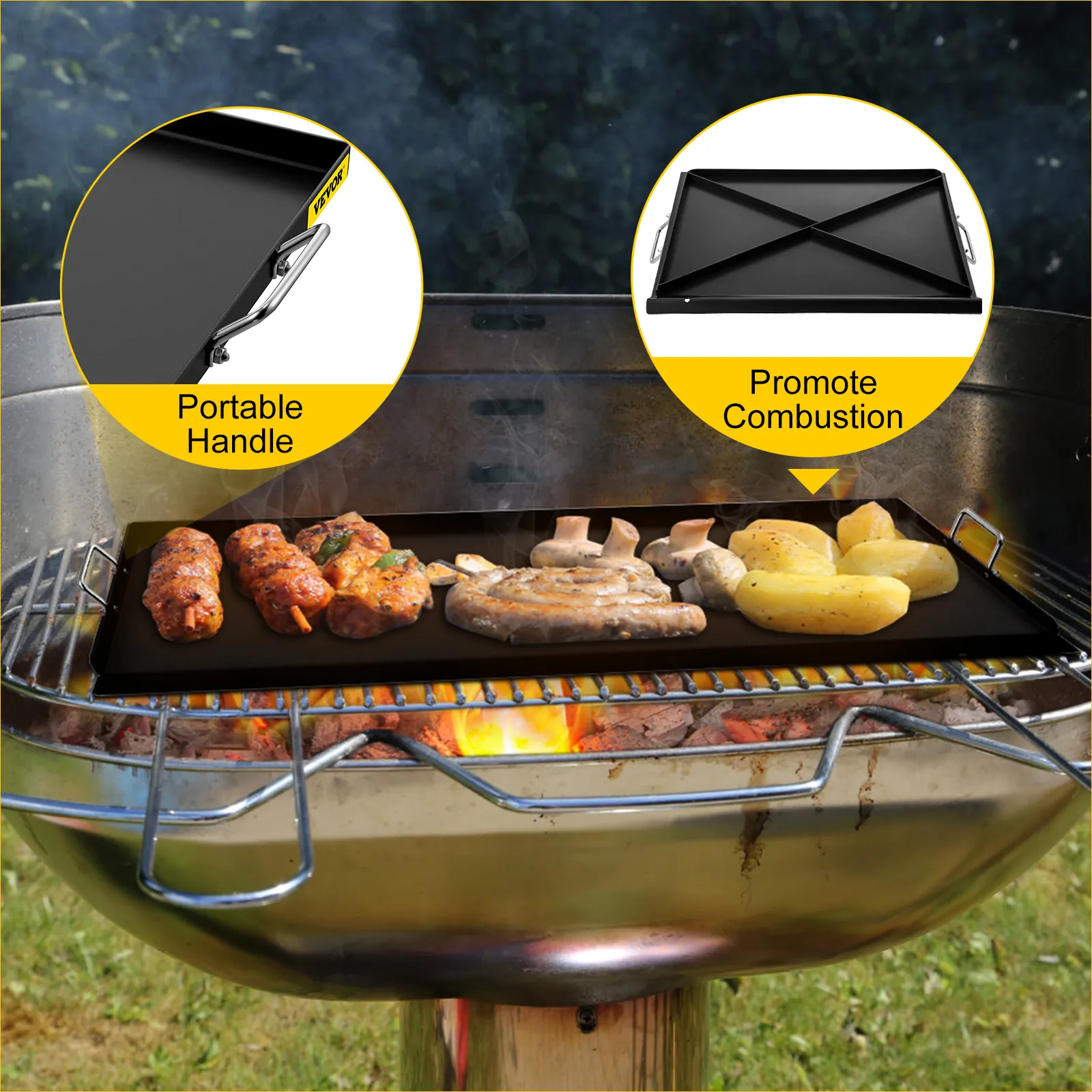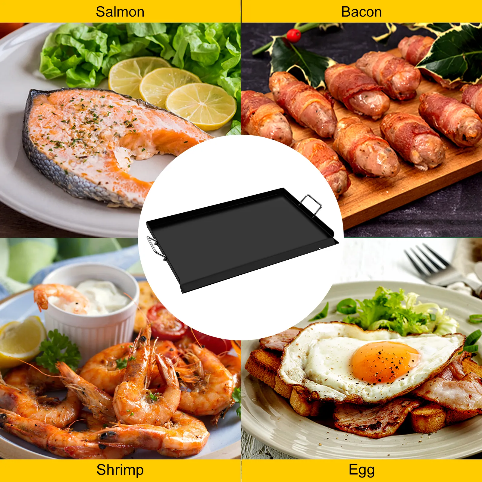 Con nuestra plancha de superficie plana, puede cocinar su comida favorita, bistec, huevos, pescado, verduras, etc. Luego, puede llevarla para acampar y cenar.