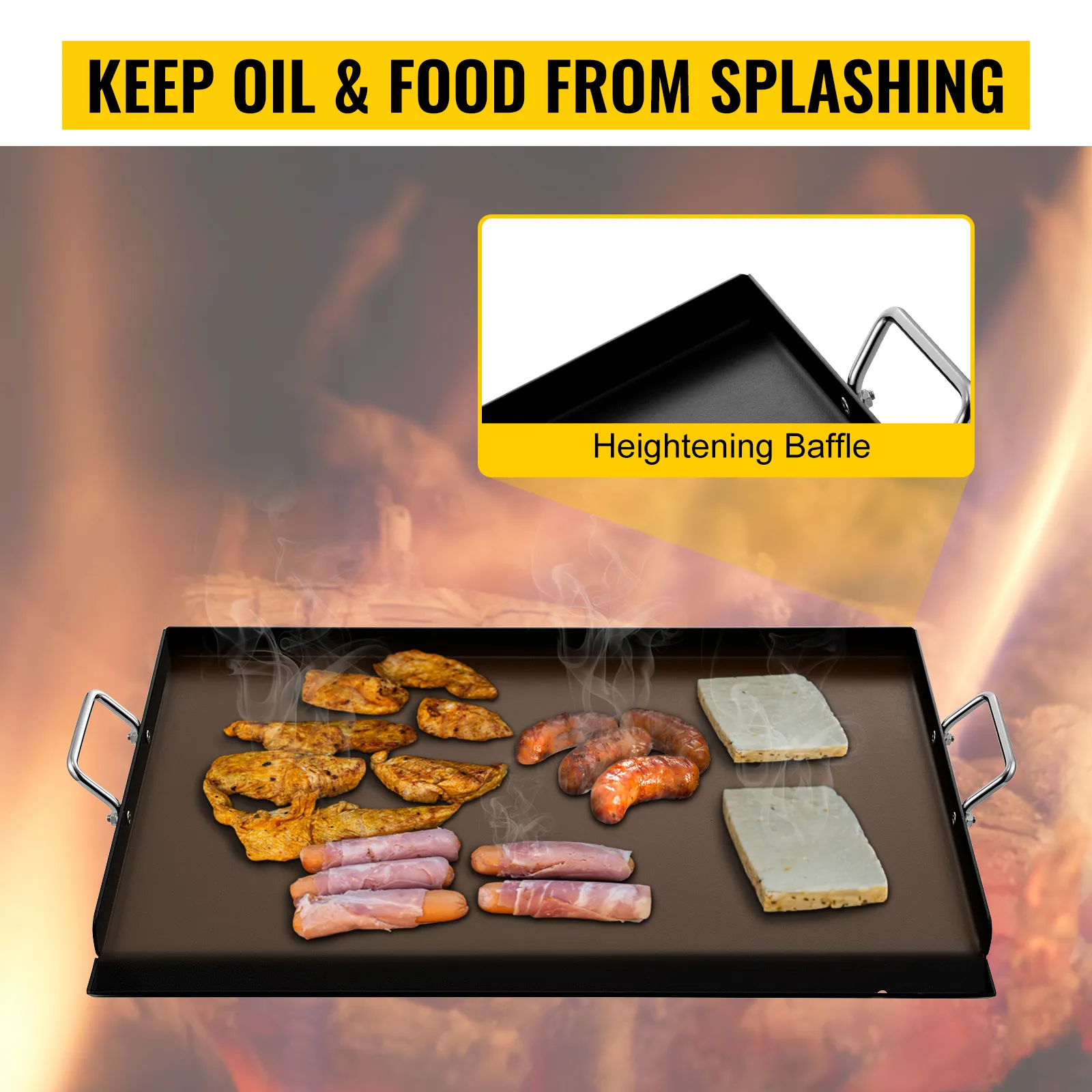 Las técnicas únicas de soldadura y fabricación contribuyen a la construcción sólida de la parrilla de acero al carbono y al refuerzo transversal inferior para proporcionar una distribución equilibrada del calor para que los alimentos se cocinen uniformemente. Manejará diferentes tipos de alimentos, incluidos panqueques, tocino, huevos, verduras, salmón, hamburguesas, perritos calientes, etc. Los desperdicios de alimentos se pueden manejar perfectamente.