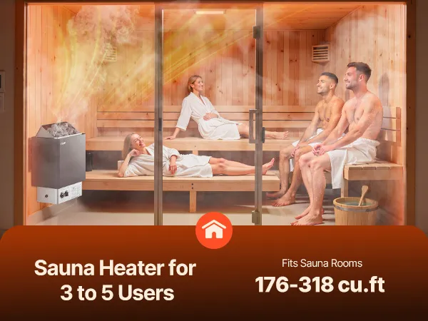Con una temperatura máxima de 230 ℉ y un tiempo máximo de 3 horas, el calentador de sauna brinda flexibilidad y control sobre su experiencia de sauna.