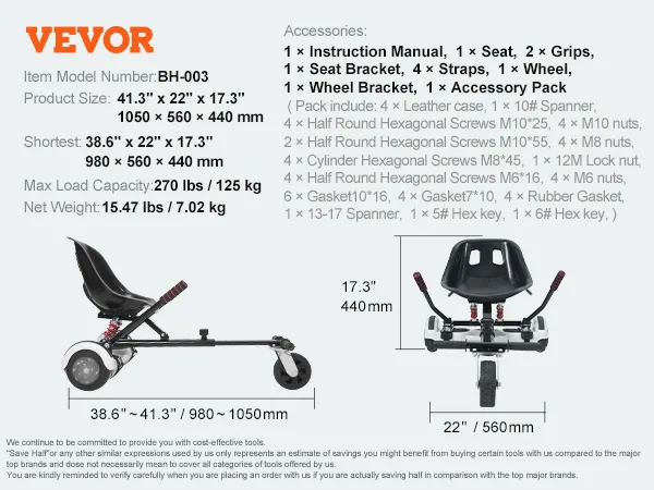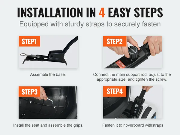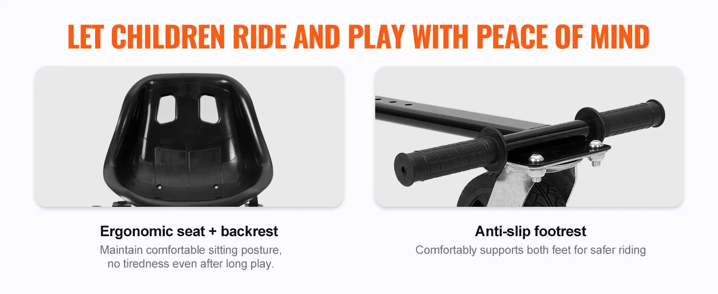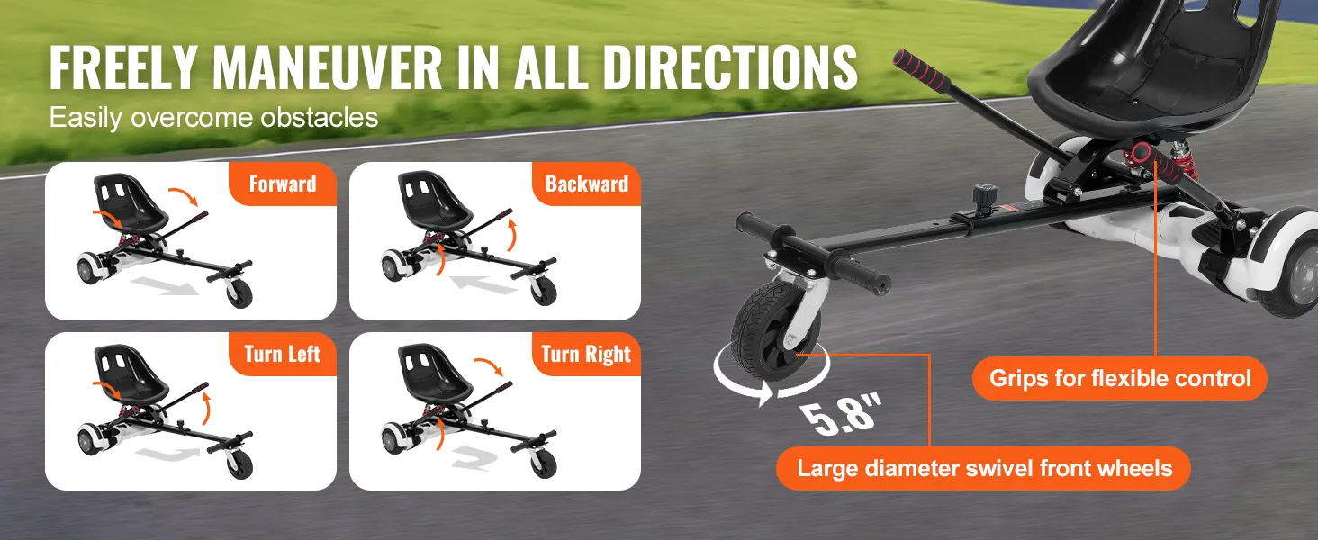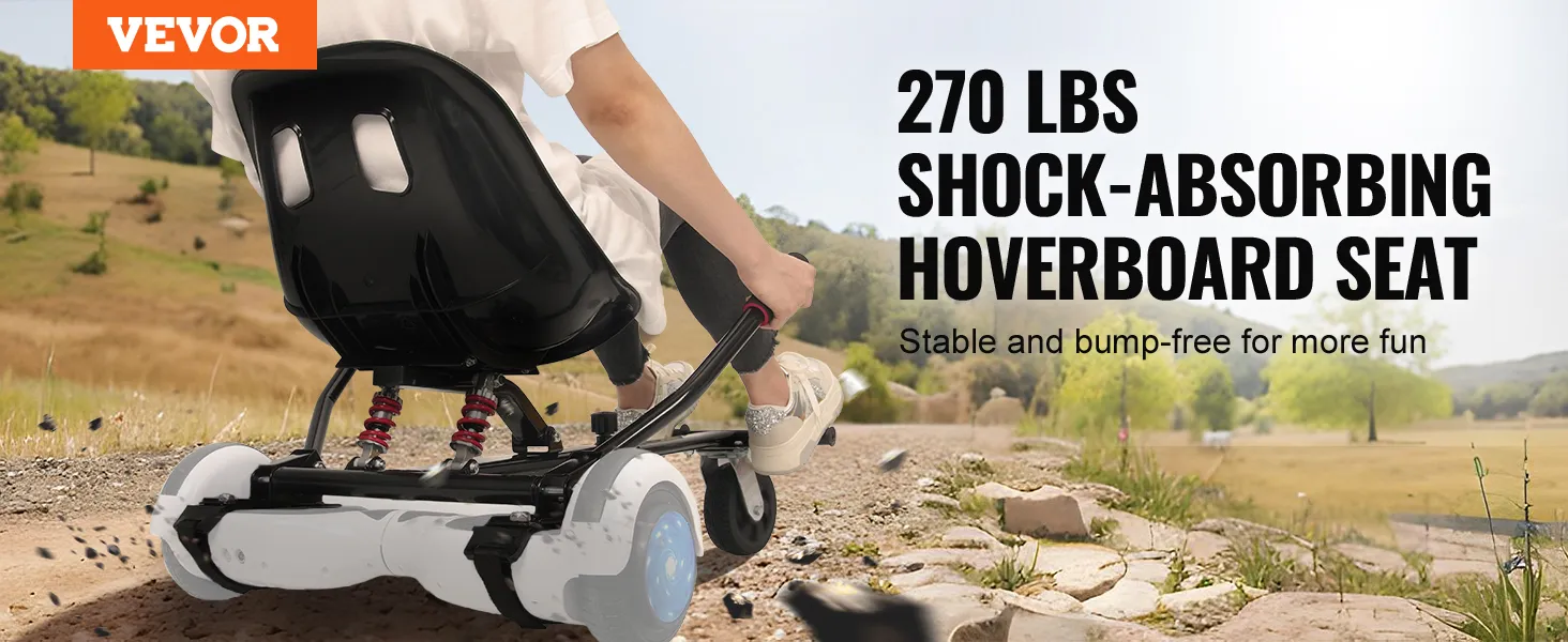 Accesorio de asiento para aeropatín VEVOR, para aeropatín de 6,5", 8", 8,5" y 10", sistema de doble amortiguación, control de agarre, longitud ajustable, capacidad de carga de 122 kg, accesorio para cochecito de aeropatín, para niños y adultos.