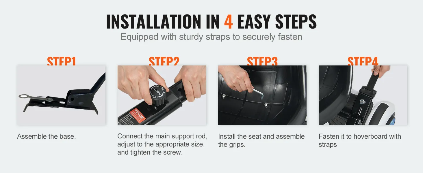Amplia compatibilidad: compatibilidad flexible con scooter autoequilibrado de 10/8,5/8/6,5 pulgadas, no requiere instalación complicada, equipado con correas resistentes para mayor seguridad, lo que le permite a usted y a sus hijos disfrutar del skate de una nueva manera.