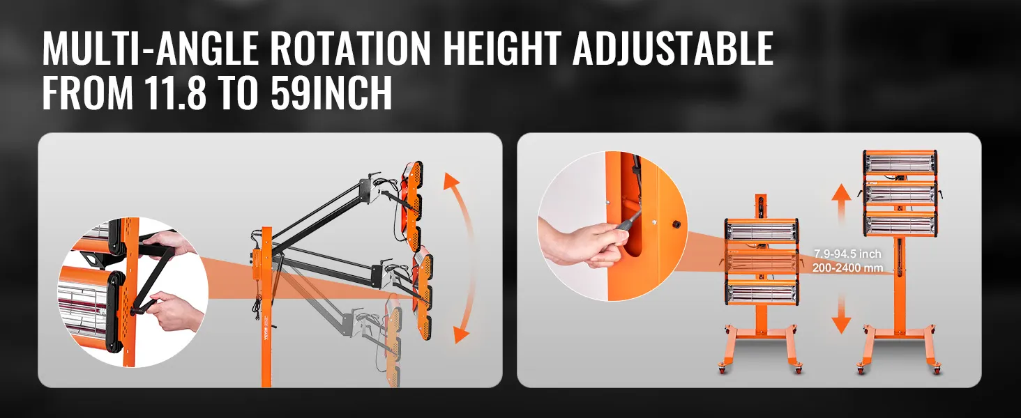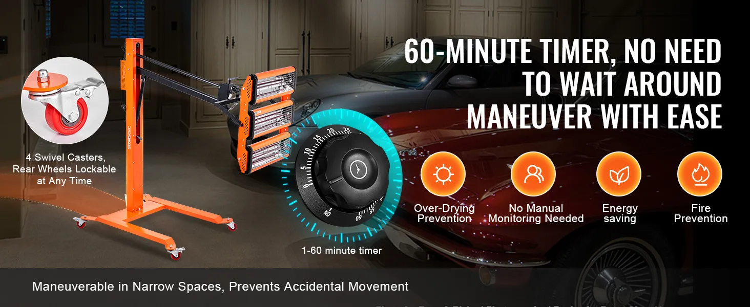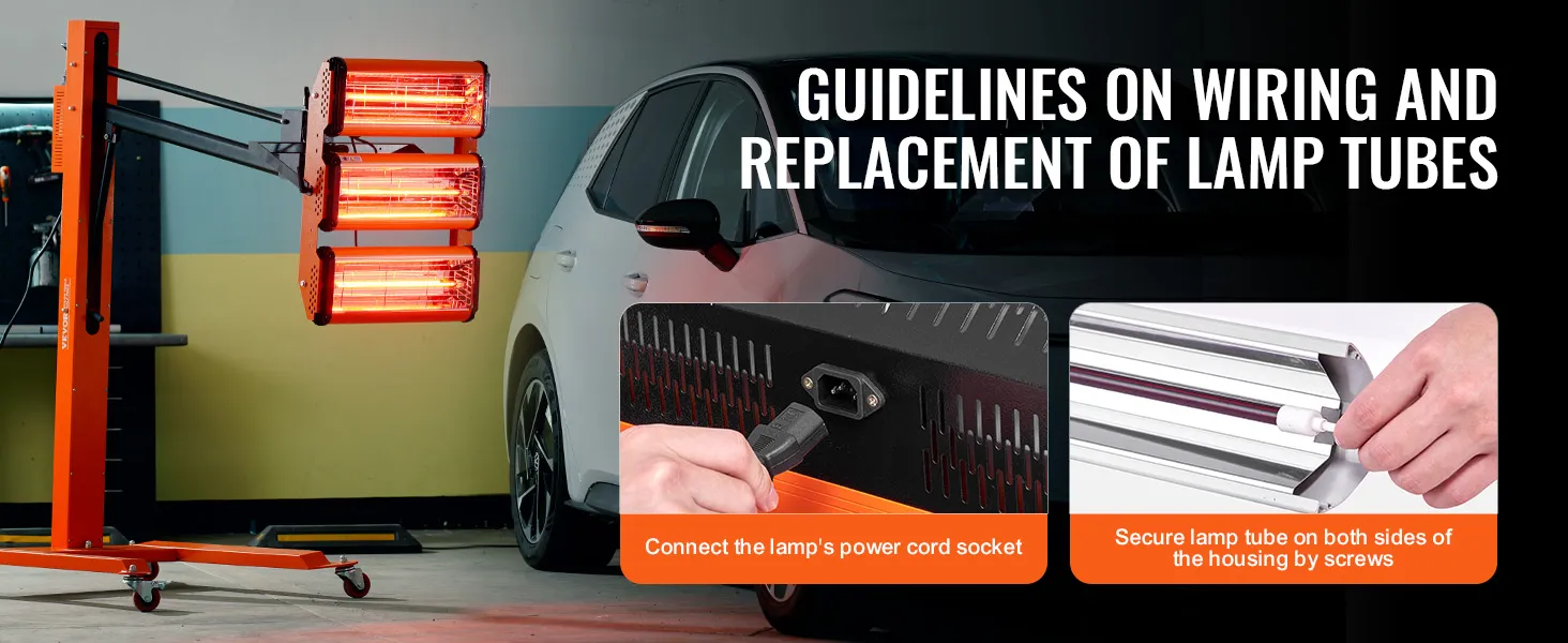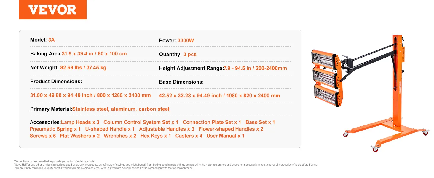 VEVOR infrared heating lamp, 3300 W, 1 hour per 60 min, lighting for the car with automatic heating and support, 8.61 square feet area, heaters for baking cabins for spraying, paint dryer for repairs in location and drying of engines.