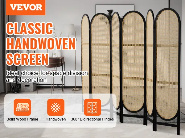 Biombo tejido clásico: este biombo consta de 6 paneles con un estilo moderno que brindan una gran área de privacidad para su espacio. Tejido a mano con tiras de ratán, presenta líneas limpias y nítidas, lo que lo convierte en una combinación perfecta de biombo y elemento decorativo, que agrega un toque de encanto vintage natural a su hogar.