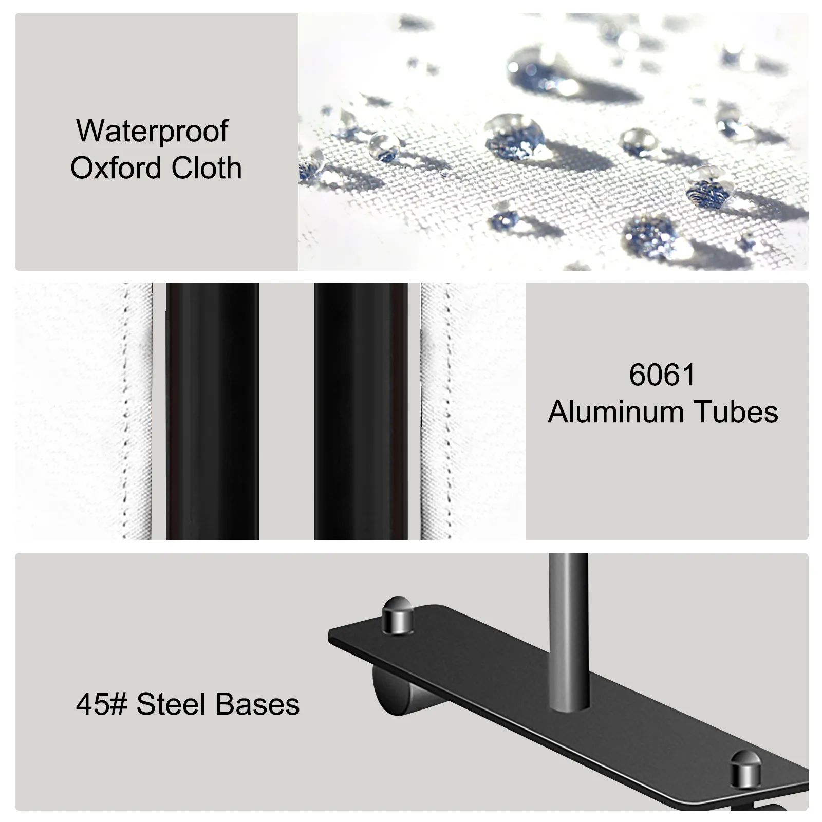 La tela Oxford resistente a la luz y al agua, bloquea eficazmente la vista y forma un espacio secreto. El marco de aluminio y las bases de acero prometen robustez y un uso prolongado.