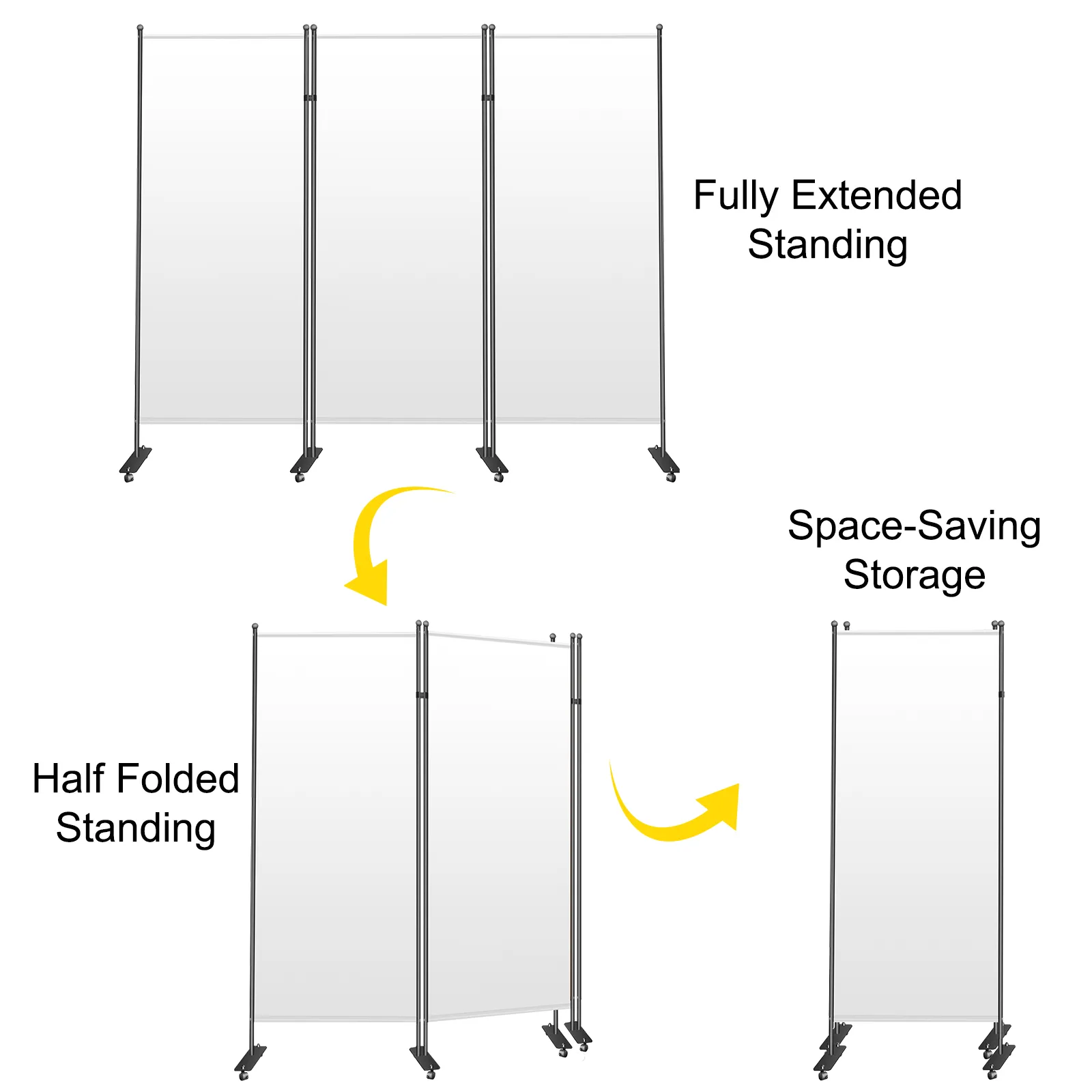 Cada panel divisor de privacidad está conectado por hebillas de plástico, lo que lo hace plegable en 360° para ahorrar espacio. Se pueden combinar múltiples juegos de pantallas en varias formas para una habitación más grande.