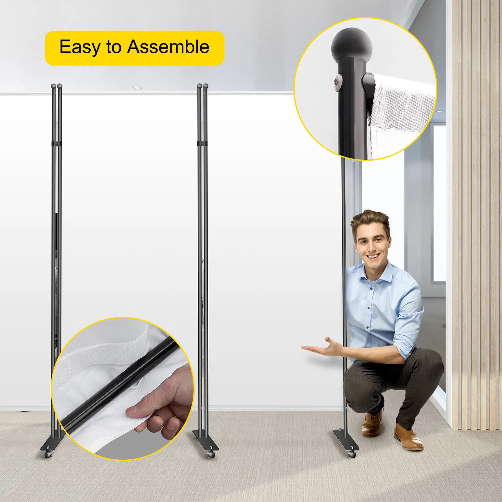 Este separador de ambientes está equipado con ocho ruedas universales para facilitar el movimiento. Cuatro de ellos se pueden bloquear para fijar la pantalla en su posición y proporcionar una excelente estabilidad.