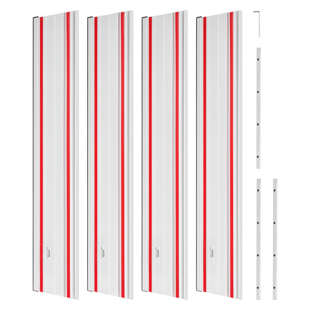 Riel guía para sierra de mesa VEVOR, rango de corte de 110 pulgadas, incluye 4 rieles guía de aluminio extruido de 27,5 pulgadas y 3 conectores, compatible con sierras de mesa Makita, Festool y WEN, para proyectos de carpintería.