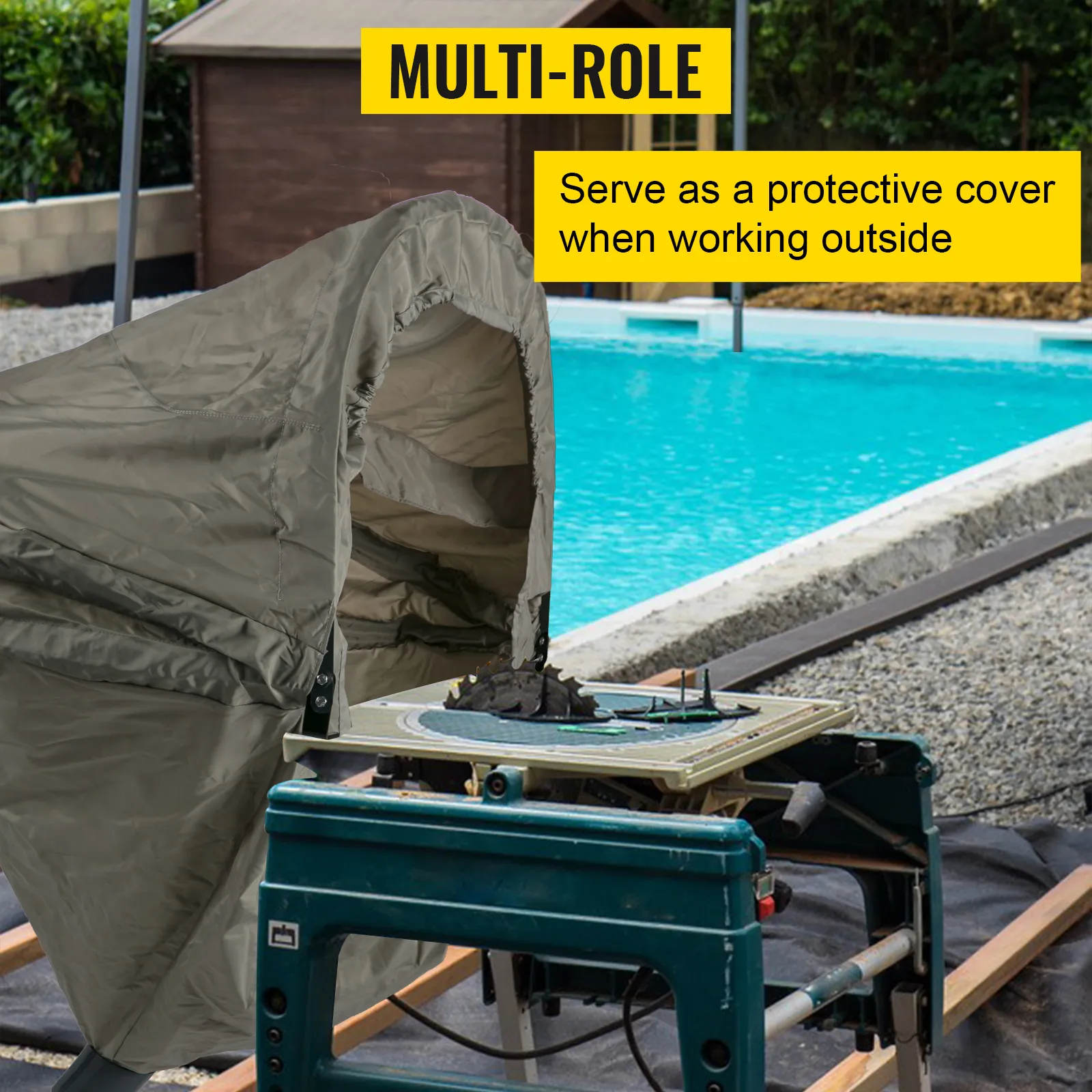 Nuestra tapa colectora de polvo es excelente para sierras de mesa para ingletes y baldosas. Tamaño de la campana: 50 x 30 x 40 pulgadas. La tela Oxford de calidad y el diseño impermeable garantizan que su sierra esté protegida. Accesorios ricos para su instalación sin esfuerzo.